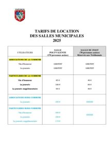 - Règlement intérieur daté et signé, convention d’utilisation de la salle. Les documents sont disponibles au secrétariat de la mairie.